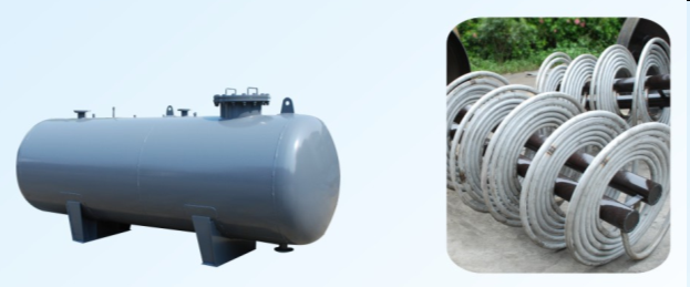 5、本產品、螺旋換熱管束材質以不銹鋼,紫銅管為主要推薦材質,這樣徹底解決了殼體內部銹蝕較嚴重的問題,并有較強的換熱效果。