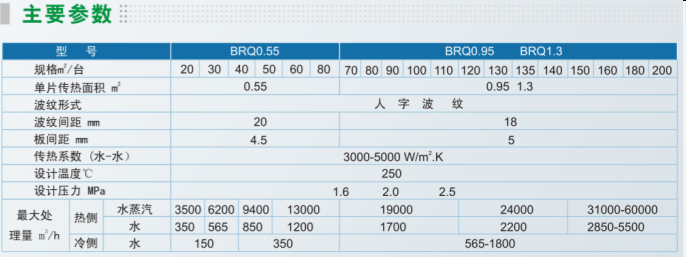 注:板材材質(zhì)選用SUS304、316L不銹鋼或哈氏合金、鈦,進出口管徑可根據(jù)客戶要求確定,換熱面積10-300㎡ 。